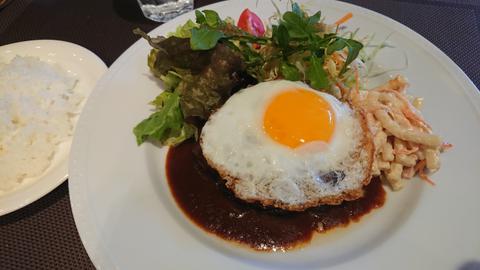 チキン🐓カレー🍛魅力的なメニューが沢山ありましたが、今日のランチはハンバーグ☺️目玉焼がのってるのもポイント高い‼️