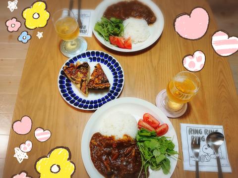 夕飯はお土産のキッシュと昨日から仕込んでた牛すじカレー🍛