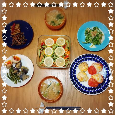 今夜は昨日の晩ごはん用に仕込んでた鶏肉南蛮漬けと常備菜で二人ごはん。