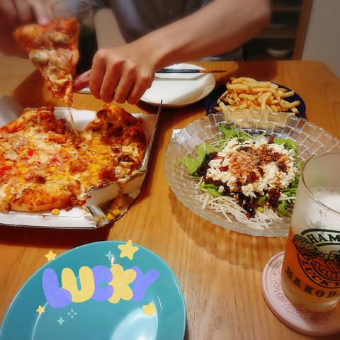 夕飯は久しぶりに宅配便ピザ。今の家に引っ越してから初めてのシカゴピザ😌