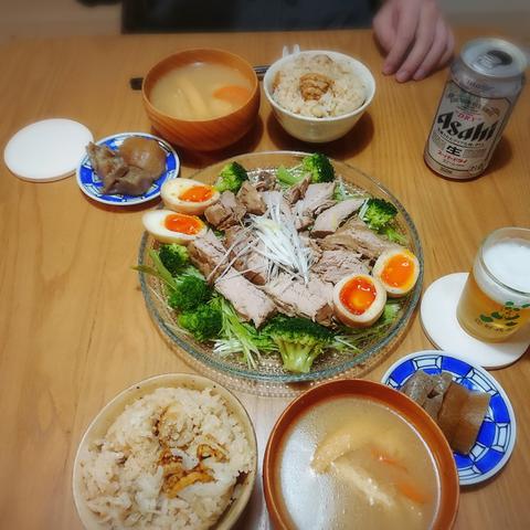 昨日の炊き込みご飯の残りもあるのでなかなか豪華な夕飯でした。