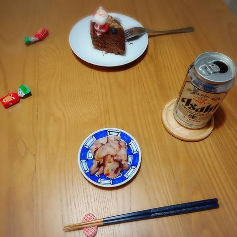 帰って来た先生と晩酌タイム🍺私はたこわさ。先生はケーキ