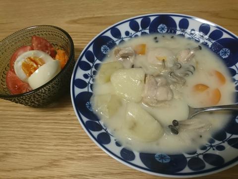 帰ったら奥さまがジムに出ていたので、鍋に用意されていたシチューを温めて食べました。