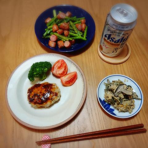 夕飯はサンシャインで売ってるお気に入りのハンバーグを焼きました。