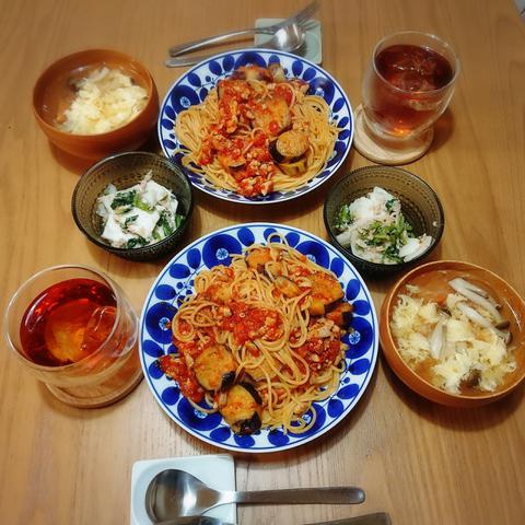 ナスと鶏肉のトマトパスタ
