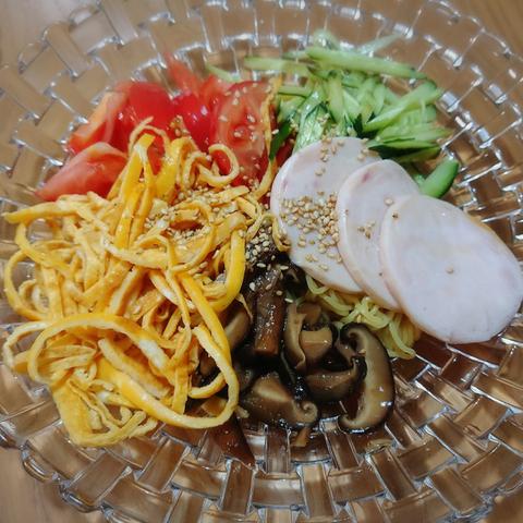 お風呂に入ってから晩御飯。冷やし中華、前回のゴマだれの方が好きかな。