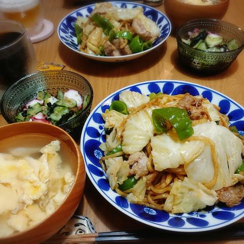 家にあるキャベツを消費するため、スーパーで安かった太麺の焼きそばをかってきました。