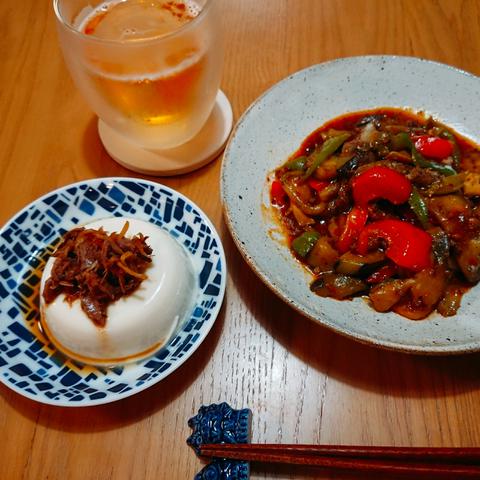 贅を味わいシリーズの麻婆茄子です。冷蔵庫に残ってた野菜たちをいれて作りました。ふー。