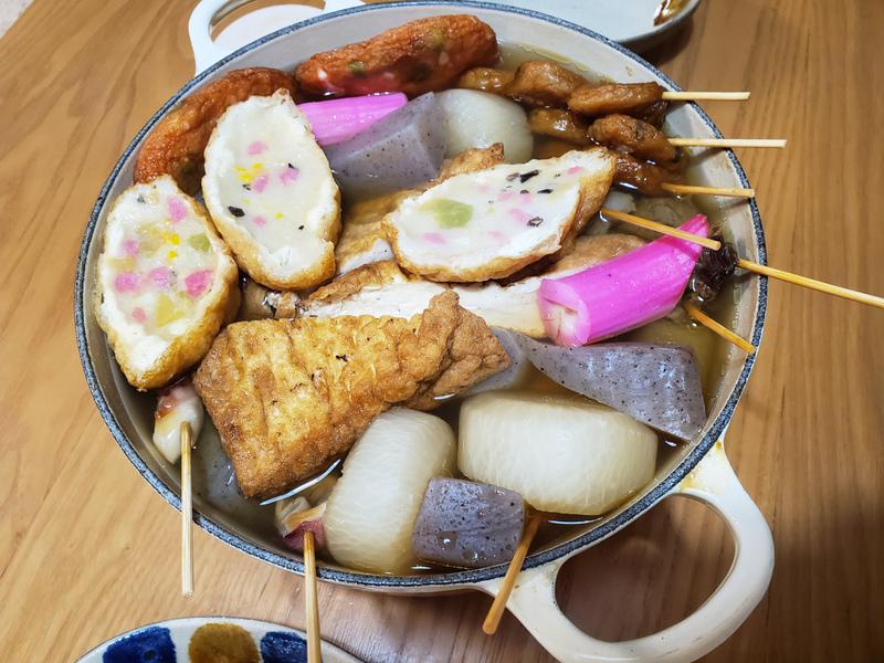 大根、蒟蒻、卵、厚揚げ、すまき、練り物各種、たこ、牛筋、手羽中です❗