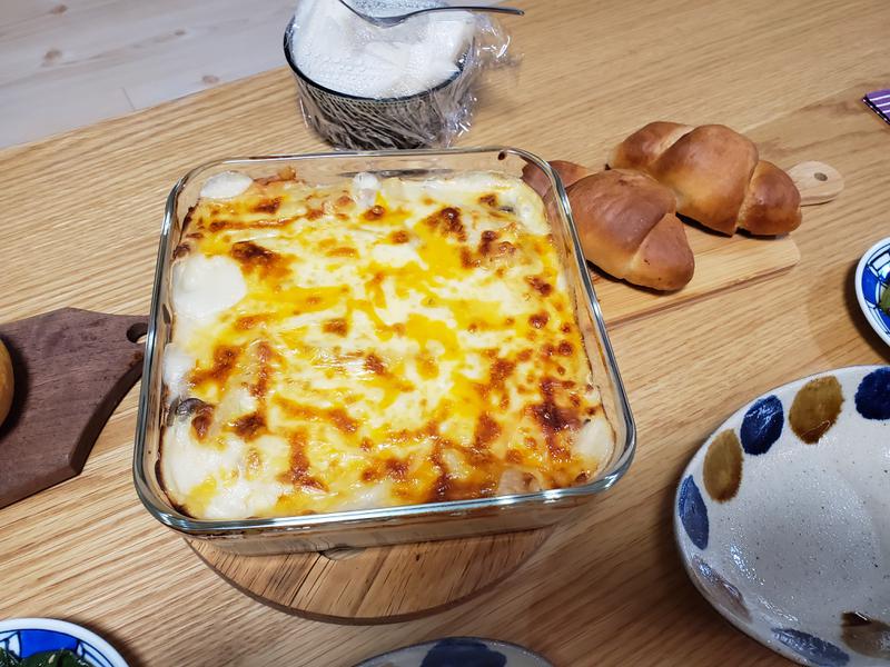 グラタンを食べて、おでかけblogを更新して、22時には布団に入りますよー😪💤。