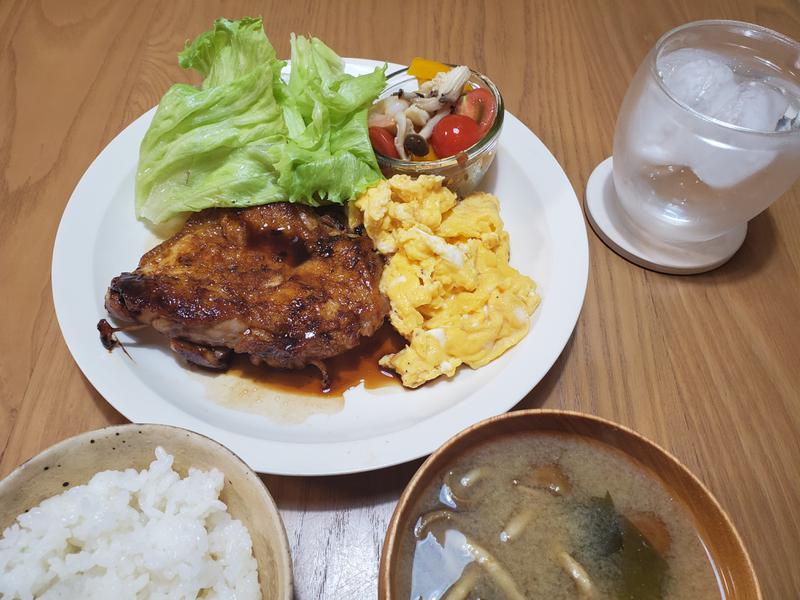 夕飯はふれあい交差点11月号のレシピです。テレビ見ながら料理してたからふわふわ卵にならなかった(>_<)あと、しょっぱくなったのでレタスに包んで食べました。付け合わせはパプリカとしめじとプチトマトのマリネです❗