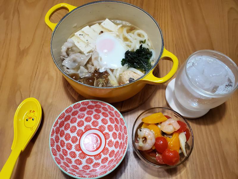 今晩は先生が遅いのでひとりで鍋焼きうどんです。火曜日のスープの残りに余り物を入れて食べました。美味しい🍲
