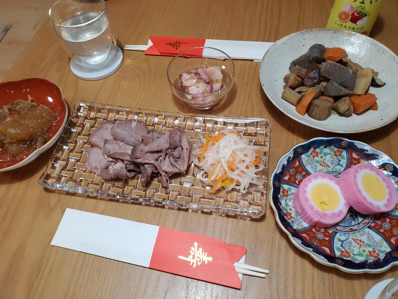 と言っても、、元日はスーパー開いてないので、両実家からもらってきたお節料理で夕飯です😆〆はうどん食べました😀