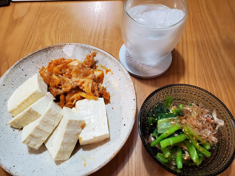 豚キムチと豆腐。