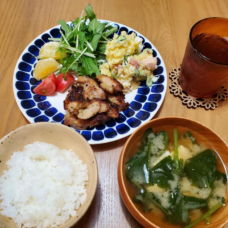 ポテサラも作って今日は久しぶりの定食風です。本日も無酒日。