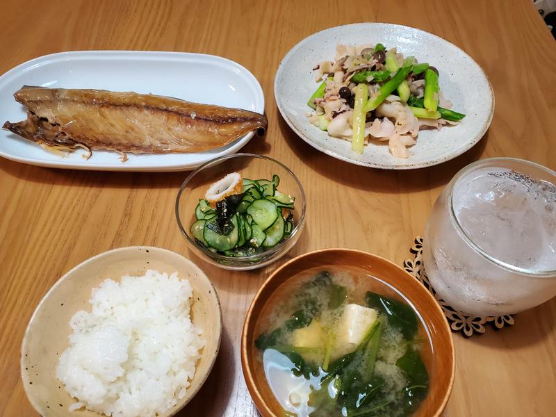 魚はフライパンで焼きました。たまには味醂干しもいいですね‼️