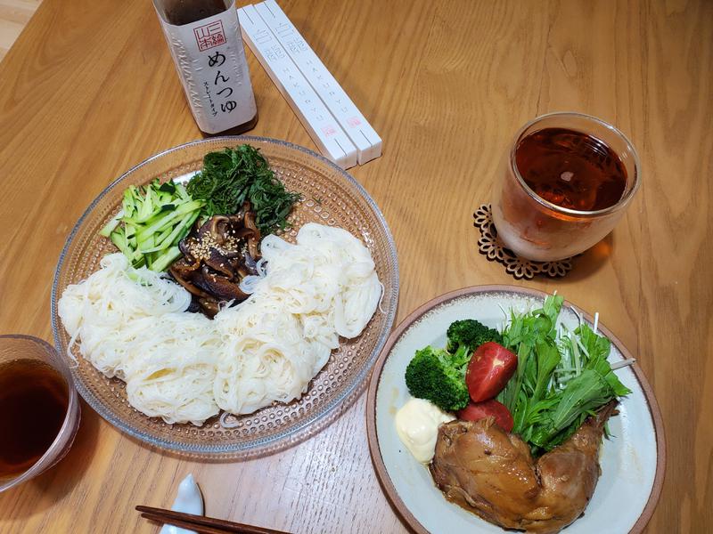 蒸し暑いので今年初素麺です😆GWにお取り寄せしてたのを、いただきました~。