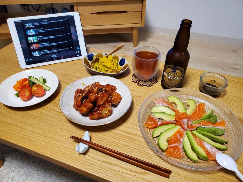最近ハマってるコウケンテツさんのYouTubeからヤンニョムチキンを作ってみました。この前作ったカンタン酢のピクルスも合わせてビール🍻が進む‼️