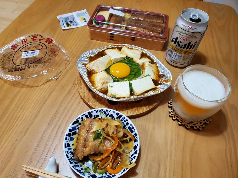 私は鰻が得意じゃないので、ローソンでホルモン鍋買ってみました。ローホルって言うらしいです。豆腐とニラと卵のせ。残念ながら好みじゃなかったです。。