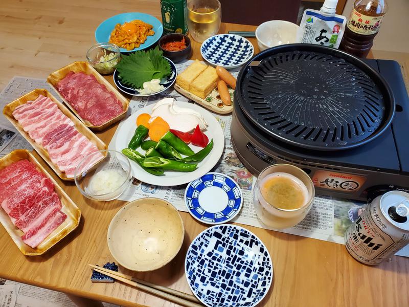 4連休最終日。遠くには行けなかったけど毎日充実してました😌さて、今夜は予定したBBQが雨で中止になったので、お家で焼き肉‼️念願のやきまるを購入しました(色々回ってやっと見つけた)🙌
