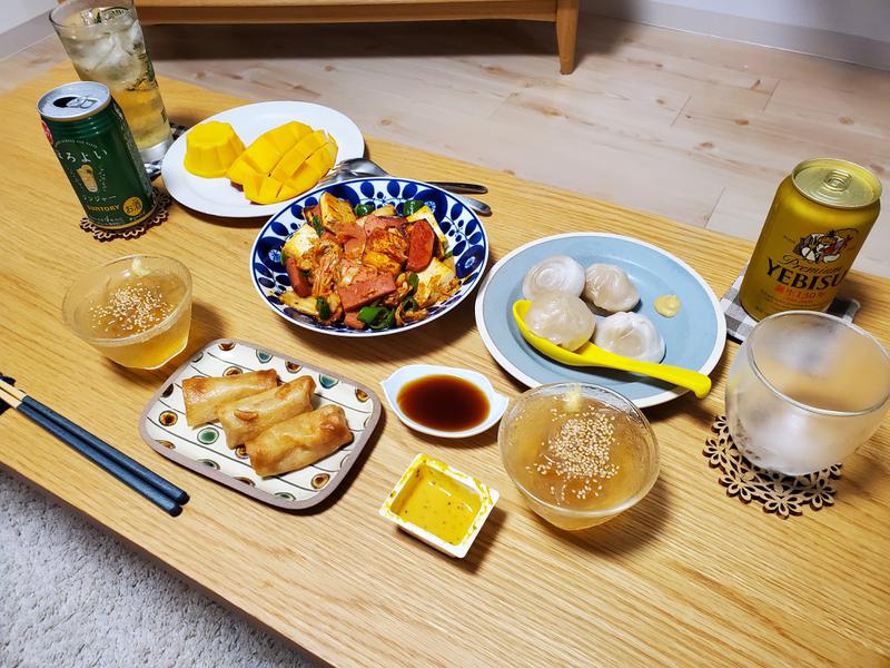 豆腐とスパムのキムチ炒め。