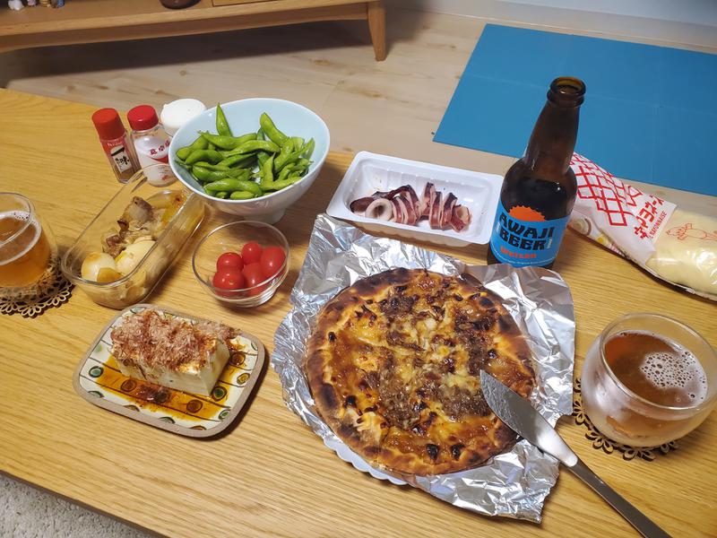 夕飯は家にあったものとコンビニでかってきたもの。