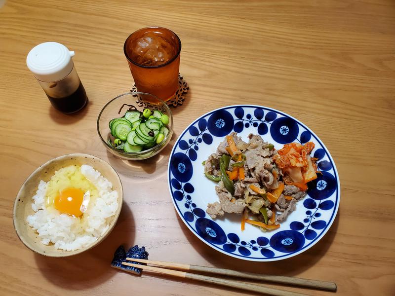 今日は私が早かったので、冷凍してたコウケンテツレシピのプルコギを炒めました。最近はコウケンテツと卵かけご飯にハマってます。飲みたいけどビールは我慢。