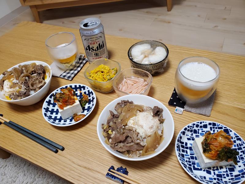 今日は疲れてたので残り物の牛丼です😌丼物は作り置きしてたら楽ですね😌